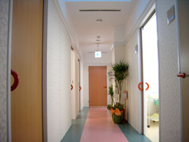 【廊下スペース】 緊張と不安という心を和らげる、「患者」ではなく「女性」をいざなうレッドカーペットを通ってその先に独立した診察室(1診・2診)又内診室があり、プライバシーに配慮されていますのでゆっくりと相談して頂けます。 |